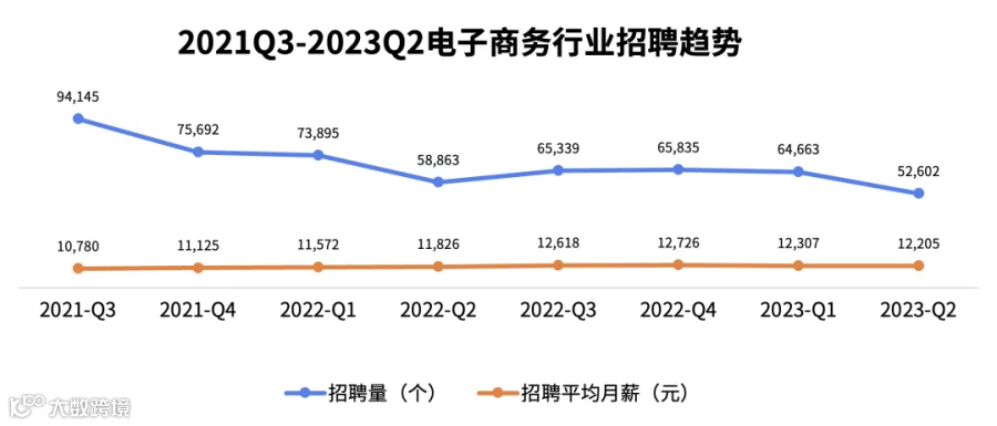 2023年,电子商务行业招聘量与招聘薪酬呈现下滑趋势。