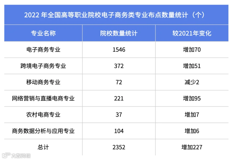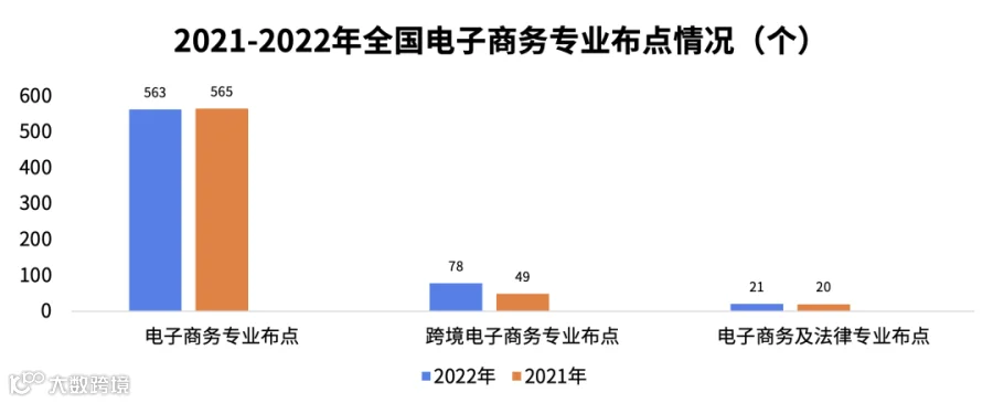 2022年,我国高等职业院校电子商务专业布点数量增长明显,保障电子商务应用型人才培养。