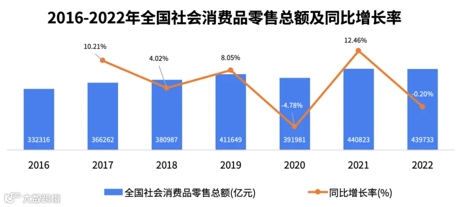 国家统计局数据显示,2022年全国社会消费品零售总额达到43.83万亿元,相较2021年下降0.2%。与此同时,2022年全国网上零售额达到13.79万亿元,增速同步放缓至4.00%。国家统计局表示,2022年消费市场受到疫情冲击较大,特别是聚集性、接触性消费受限,对整体消费市场形成的冲击较大。此外,居民消费意愿也在下降,不敢消费、不便消费问题比较突出。