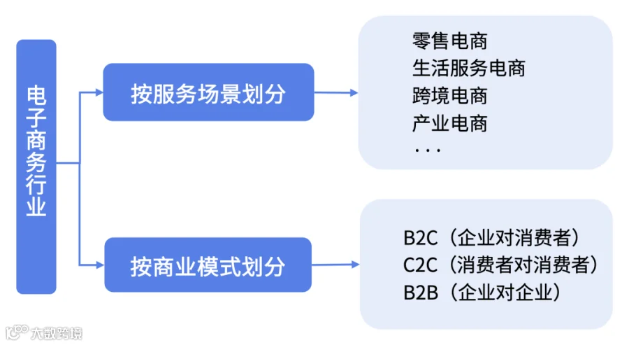 具体分类上,按服务场景划分电子商务行业可划分为零售电商、生活服务电商、跨境电商、产业电商等;按商业模式可划分为B2C(企业对消费者)、C2C(消费者对消费者)、B2B(企业对企业)。