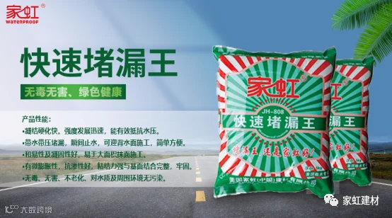 单独使用堵漏王的时候,是无法起到防水、防渗的作用的,对于有些渗漏厉害的地点,只用防水涂料没有用,这个时候就需要到堵漏王结合使用。