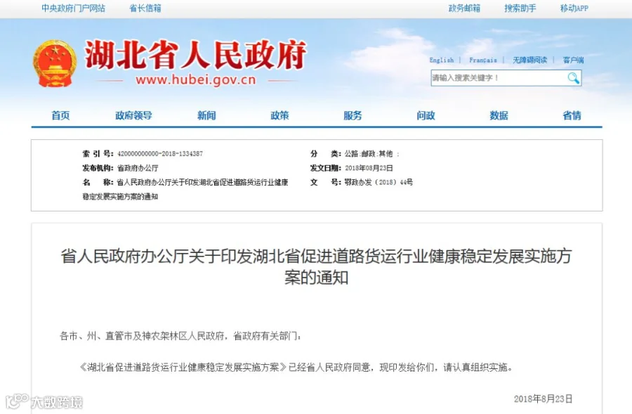 8月23日,湖北省人民政府印发了《湖北省促进道路货运行业健康稳定发展实施方案》。