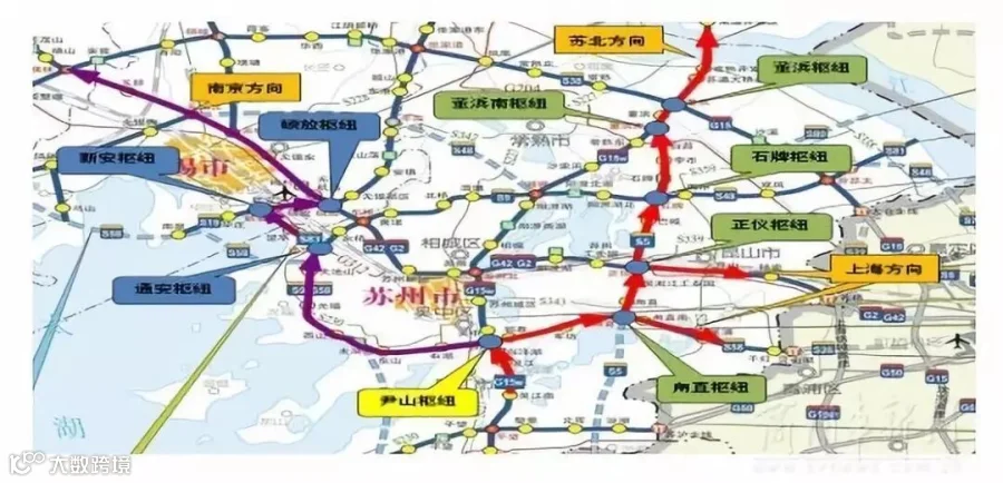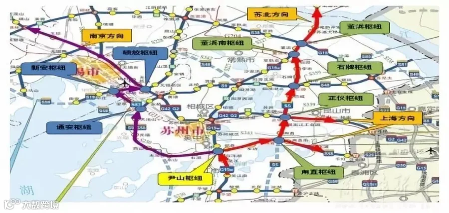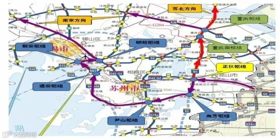 一、南京方向:京沪高速G2/G42→正仪枢纽→常嘉高速S5→甪直枢纽→沪常高速S58→通安枢纽→苏锡支线S83→通锡高速S19→京沪高速G2/G42或正仪枢纽→常嘉高速S5→董浜南枢纽→常台高速G15w→董浜枢纽→常合高速S38