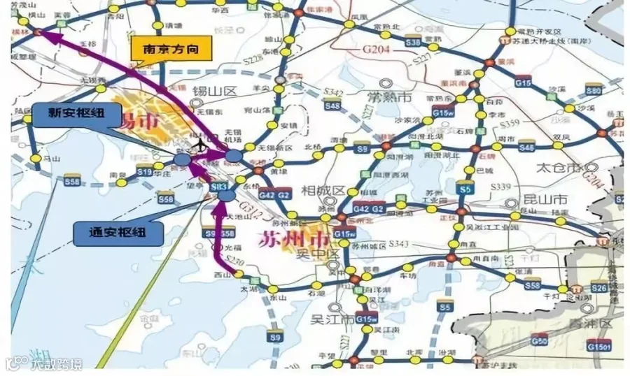 一、南京方向:常台高速G15w→尹山枢纽→沪常高速S58→通安枢纽→苏锡支线S83→通锡高速S19→京沪高速G2/G42