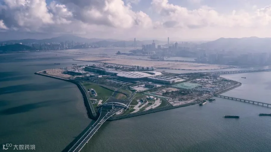 珠澳口岸人工岛是港珠澳大桥主体工程与珠海澳门两地的衔接中心,两地过关口岸都设置在岛上,实现“城市中转”。(图/港珠澳大桥管理局)