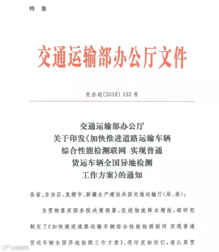 根据交通运输部办公厅印发的《加快推进道路运输车辆综合性能检测联网 实现普通货运车辆全国异地检测工作方案》的通知,重点要求各省建立综检联网系统,并在2019年底前实现普通货运车辆全国异地审验。