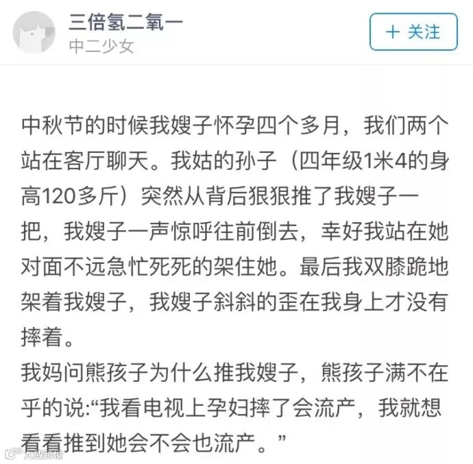 事后家人问孩子为什么要去推孕妇