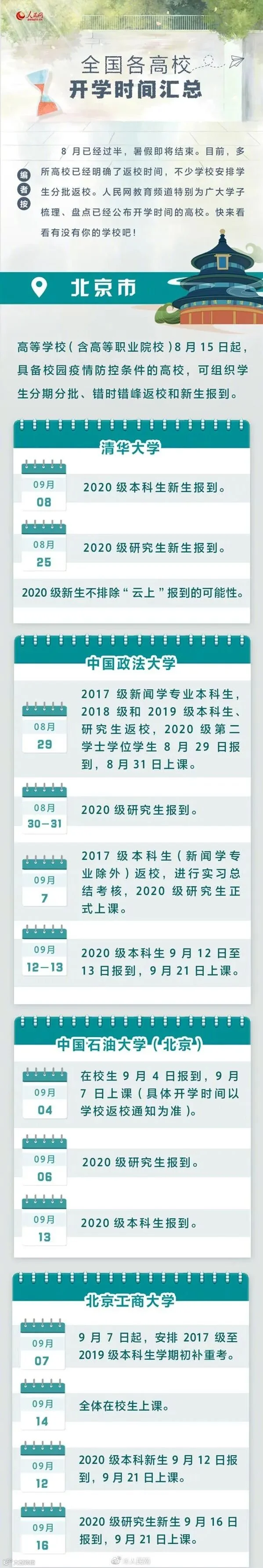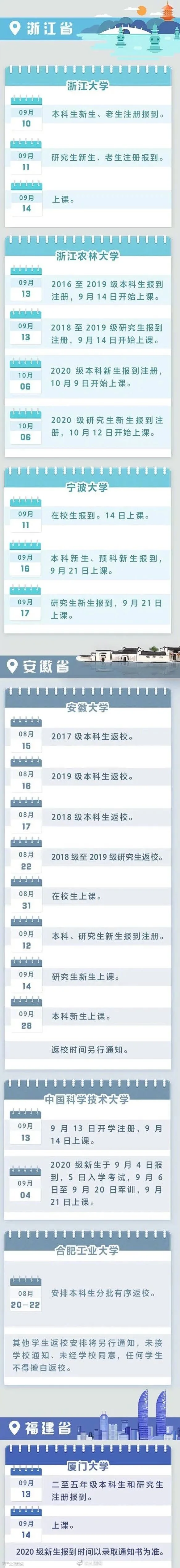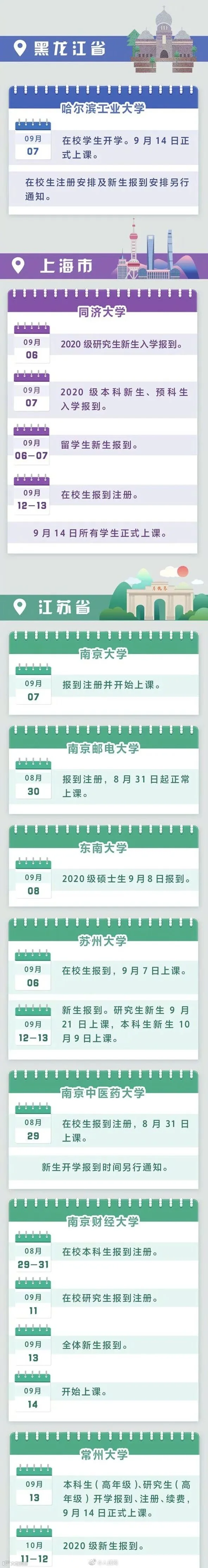 全国多地高校明确2020秋季开学时间