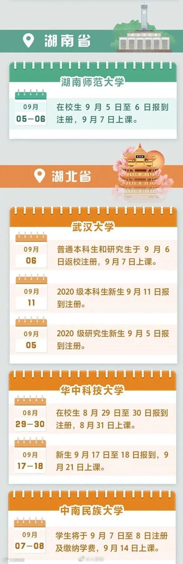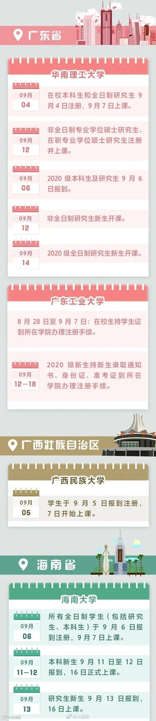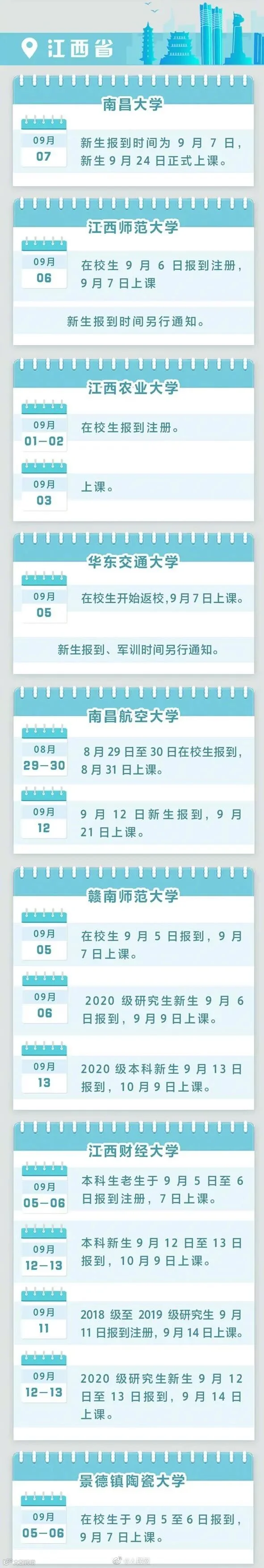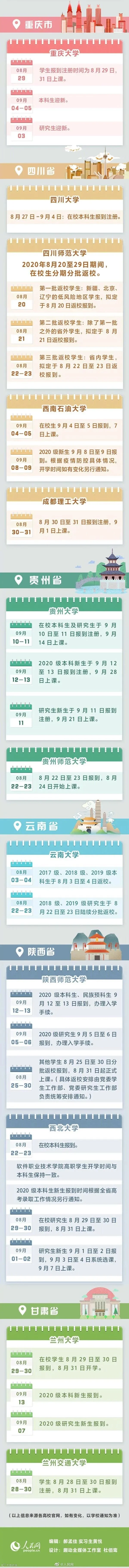 全国多地高校明确2020秋季开学时间