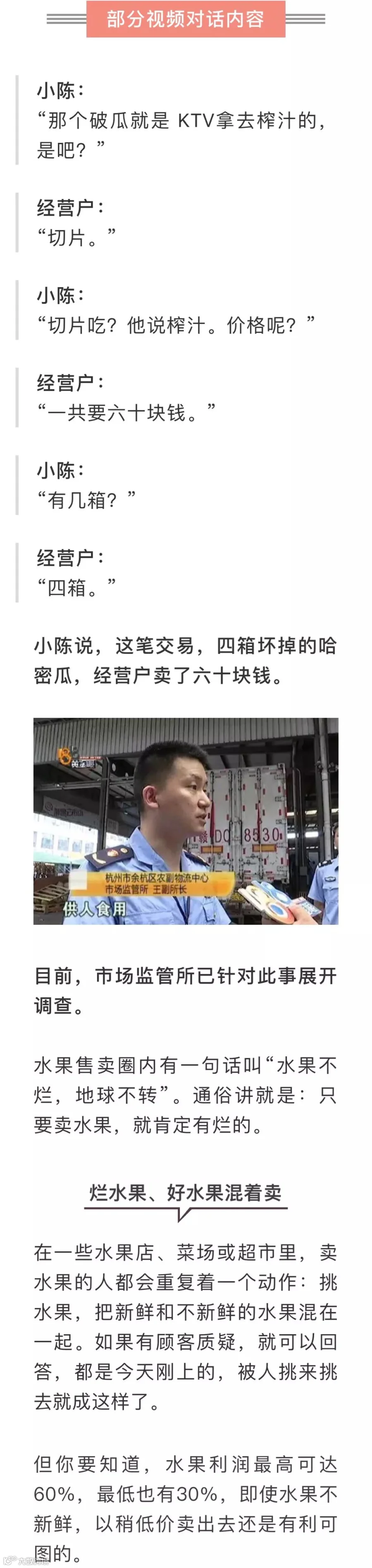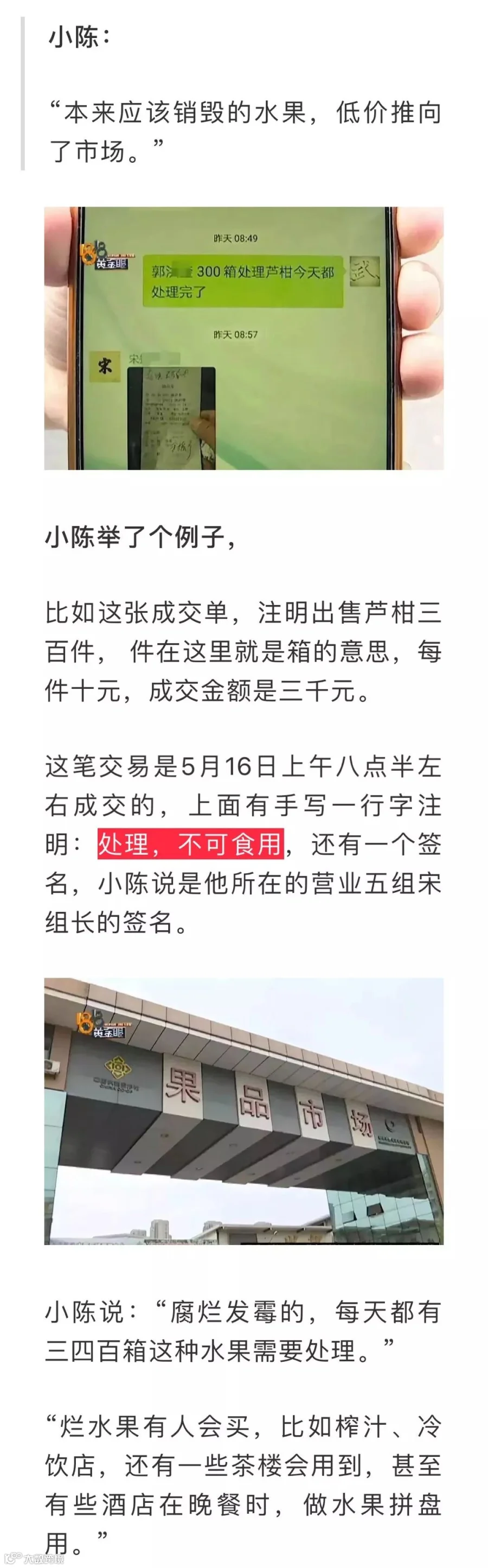 小陈是果品批发市场的营业员,近日他向媒体爆料了一些内幕,比如说,有腐烂水果流入市场,进入茶楼、酒店和冷饮店......