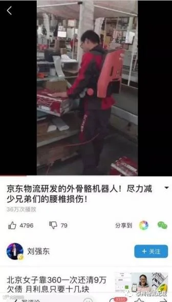 刘强东为他兄弟做一件事:研发外骨骼机器人减少腰椎损伤