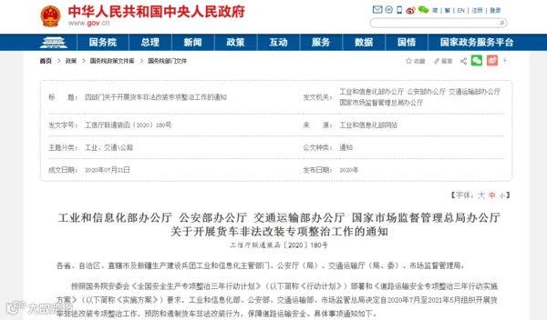 7月24日,四部委联合发文,自2020年7月至2021年5月组织开展货车非法改装专项整治工作,特别指出严厉打击“大吨小标”,到2022年基本消除货车非法改装、“大吨小标”等违法违规问题。
