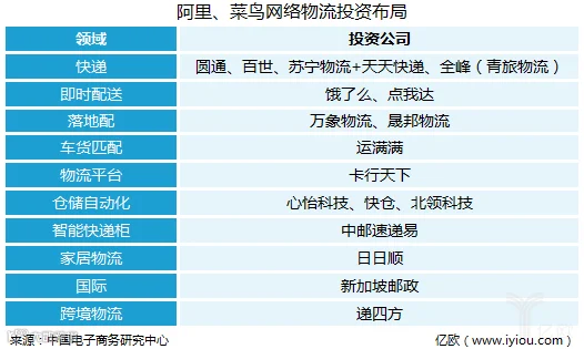 如今,阿里、菜鸟网络投资了专线、仓储、同城配送等物流企业,打通了仓储、运输、配送多个链条,形成了互利互惠的物流大网。