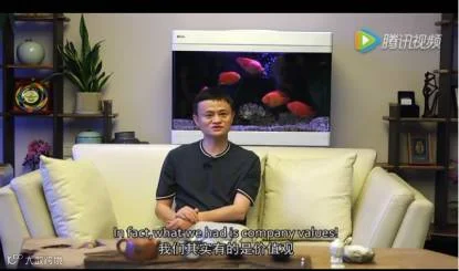 马云说,“其实我们根本没有钱,我们也没有资源,人才跑到我们公司看到这个状况都跑了。我们其实有的是价值观,有的是客户第一、团队精神,诚信,而这些东西看起来都很虚,很不值钱”。