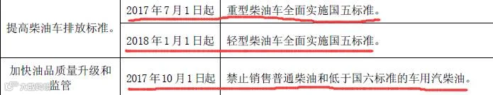 2017年10月起,北京、天津、河北、山东、山西、河南等6省的各城市禁止销售低于国六标准的车用汽柴油。