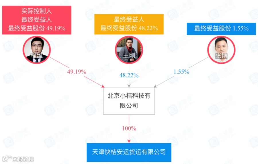 据悉,北京小桔科技有限公司最大股东为程维,持股比例为49.19%。