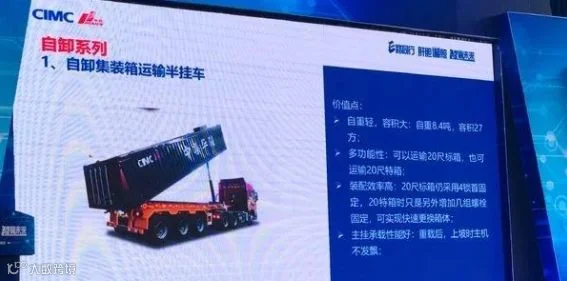首先,有一种同“平板自卸半挂”几乎一样的车型——自卸式集装箱运输半挂车。这种车型一般是用于运输20英尺集装箱的。