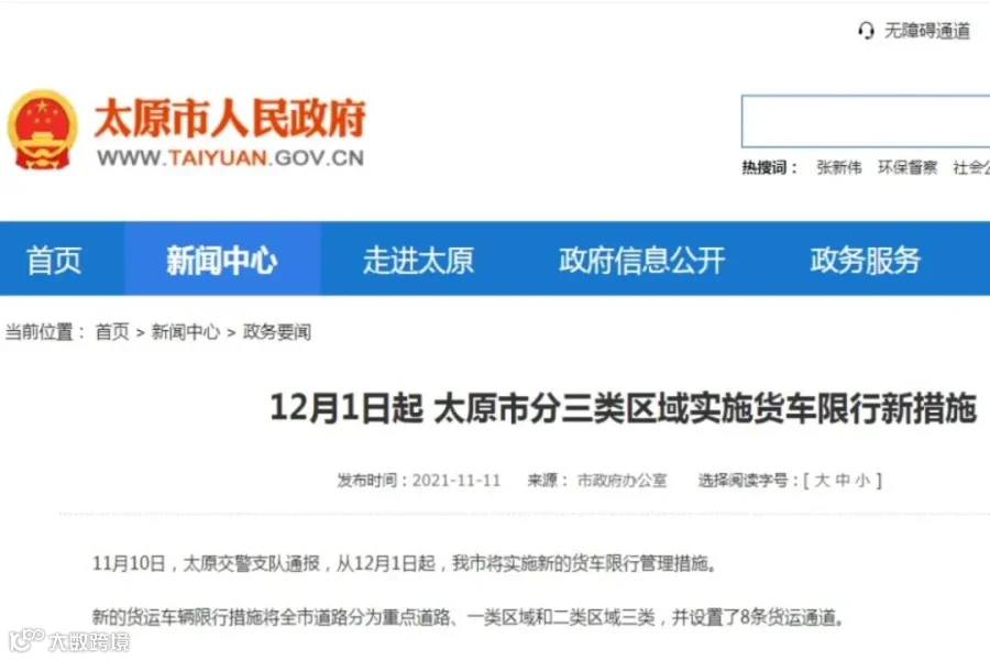12月1号起,太原将实施新货车限行政策