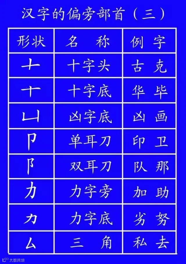 ① 有钩——七、儿、几(冗、亢、机、秃、虎)。