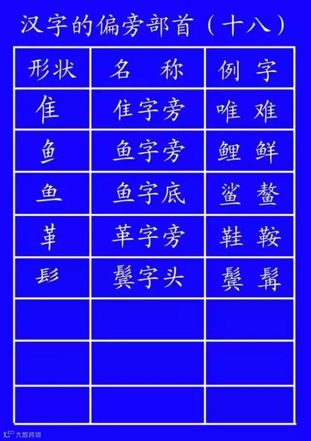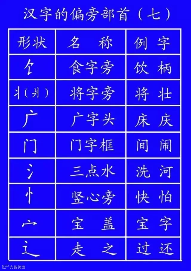 7.字的末尾笔画不同