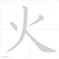 火笔顺:点、[右上]小撇、[中]撇、捺。