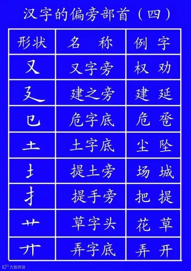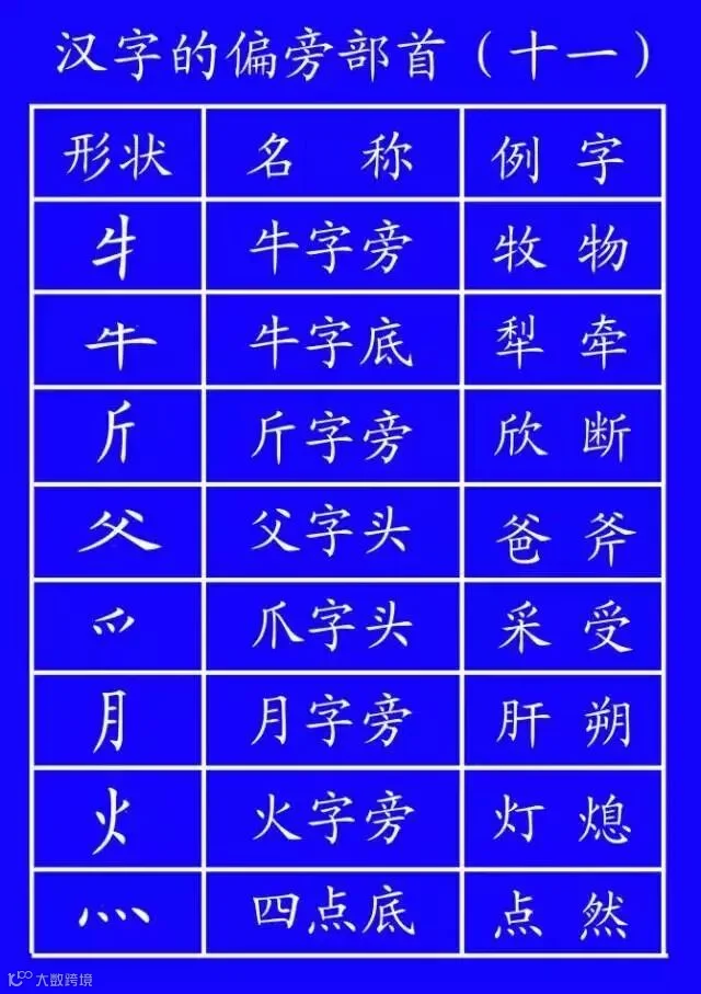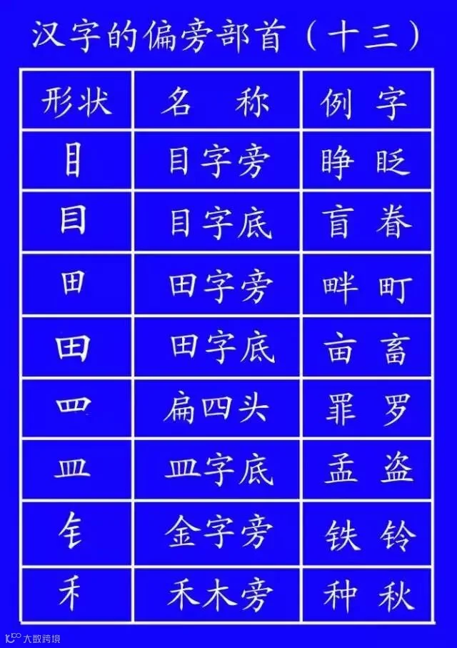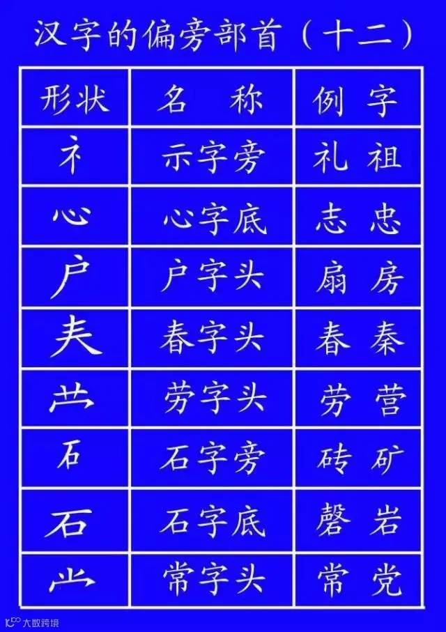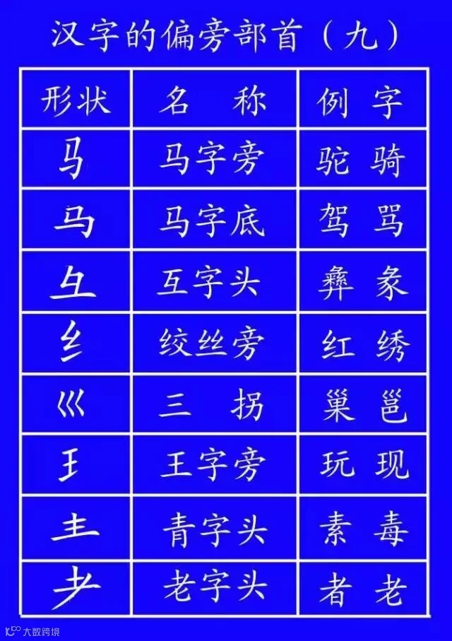 土(培场)、王(玩球)、止(歧武)、血(衅衄)、耳(取、联)、子(孙、孩)、马(驰、驶)、鸟(鸵)。