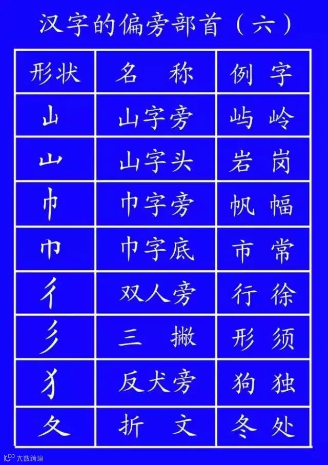 后撇:刀、力、乃、万(笔顺:横、横折钩、撇)、方(笔顺:点、横、横折钩、撇)。