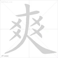 爽笔顺:横、[左]撇、点、撇、点、[右]撇、点、撇、点、最后写人。