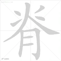 脊上部笔顺:[左]点、提、[右]小撇、点、[中]写人。
