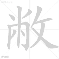 "敝"的左边先写上部的点、撇,接着写左下角的竖、横折钩,然后写中间的长竖,最后写里面的撇、点。这些字还有"弊、蹩、憋、鳖"等。