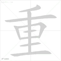 重(踵、董)笔顺:撇、横、写曰,中竖、再写二。