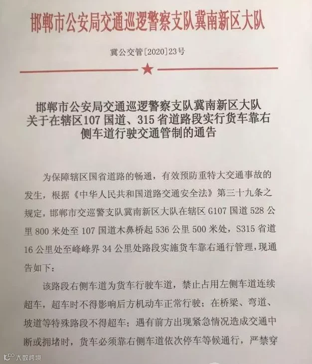 12月4日,河北省公安厅召开了国省道和农村交通安全综合治理工作现场会,会上提出全面施行“货车右行”管理举措,每3公里设置一处电子警察抓拍系统,采取“空降式”执法等方式重点管控货车右行。