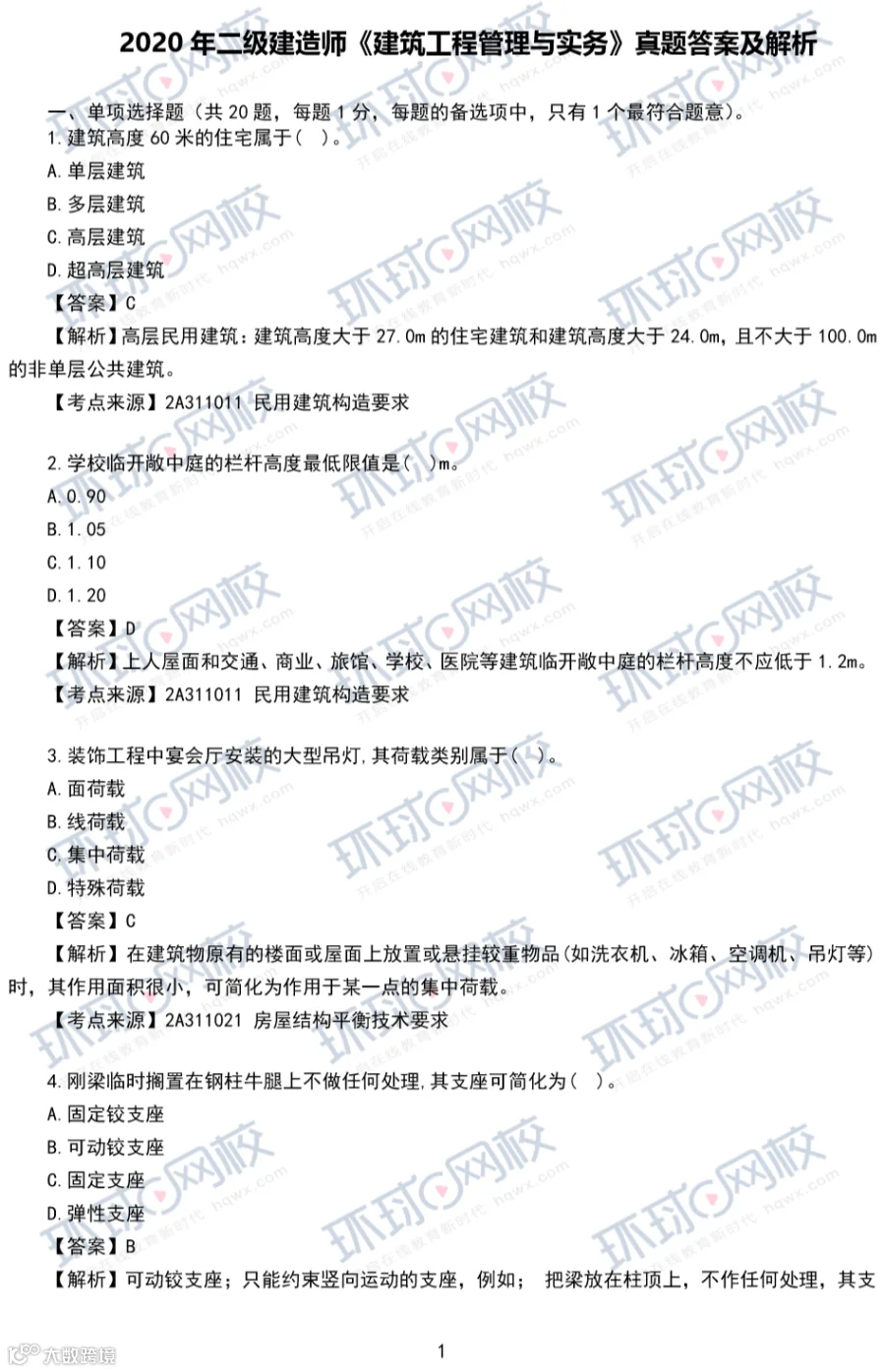 2020年建筑真题答案