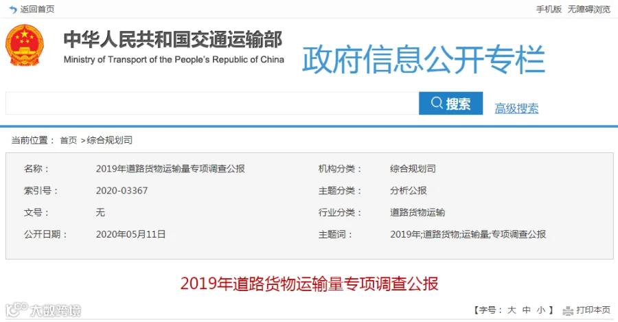 为进一步提高道路货物运输量统计数据的真实性和准确性,更好服务地区生产总值统一核算改革和交通强国建设,2019年我部在全国范围内组织开展了道路货物运输量专项调查。
