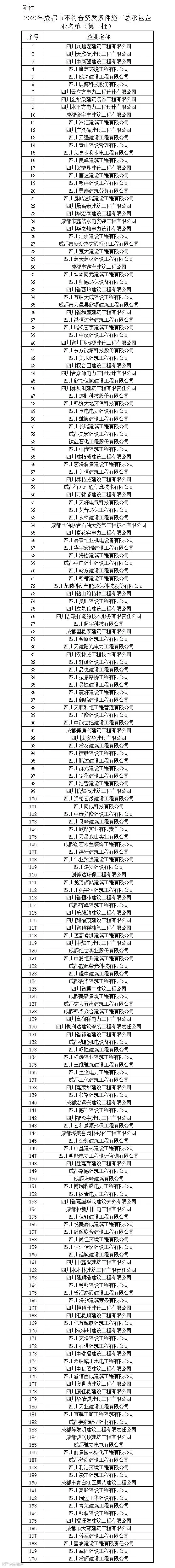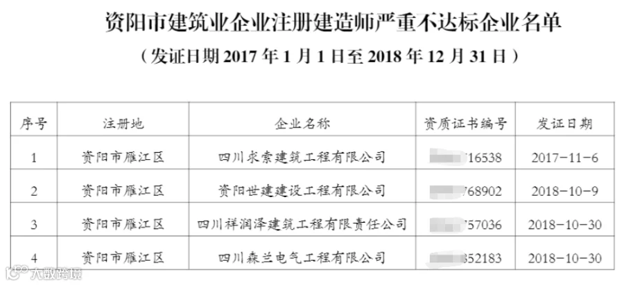 不符合资质标准的企业名单如下: