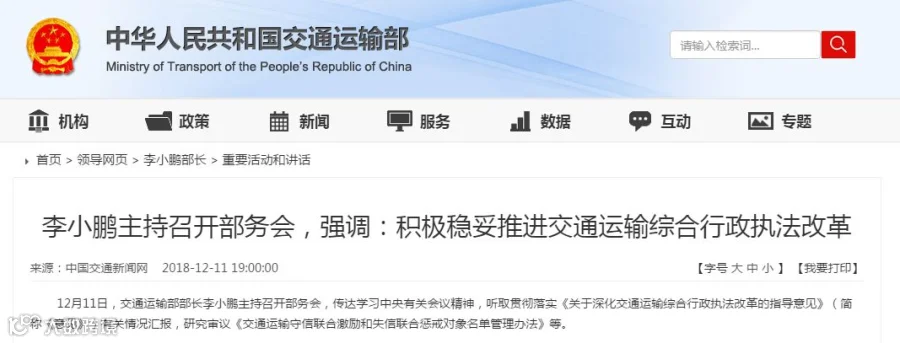 2018年11月交通部又出台了《关于深化交通运输综合行政执法改革的指导意见》,明确了2019年交通综合执法改革的重点: