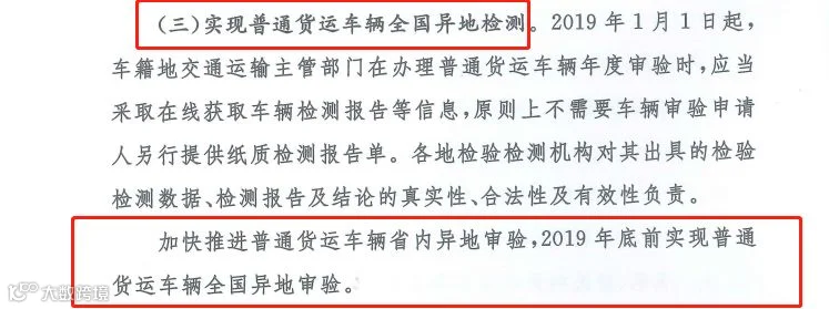 2019年底前货运车辆可异地审验