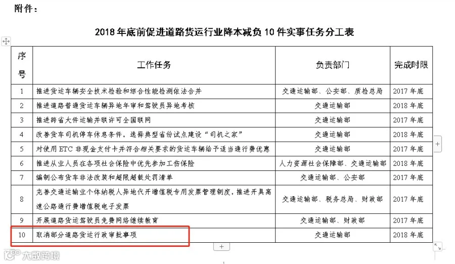 根据交通部印发的《2018年底前促进货运行业降本减负10件实事任务分工》文件中要求,到2018年底前,取消部分4.5吨以下货运车辆的货运审批手续。