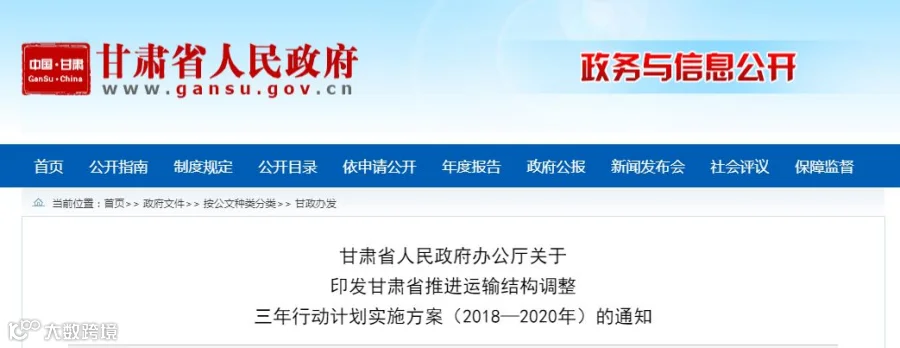 甘肃省政府办公厅印发《甘肃省推进运输结构调整三年行动计划实施方案(2018—2020年)》。明确规定: