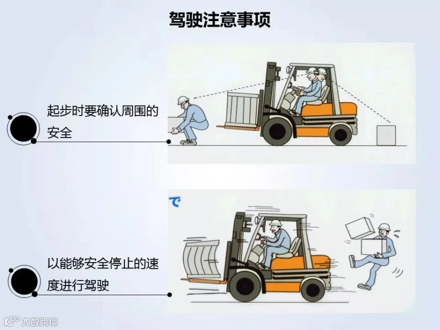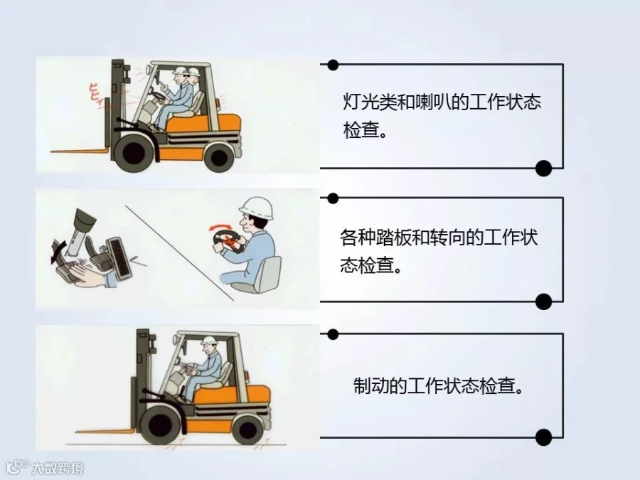 3. 叉车在载物起步时,驾驶员应先确认所载货物平稳可靠。