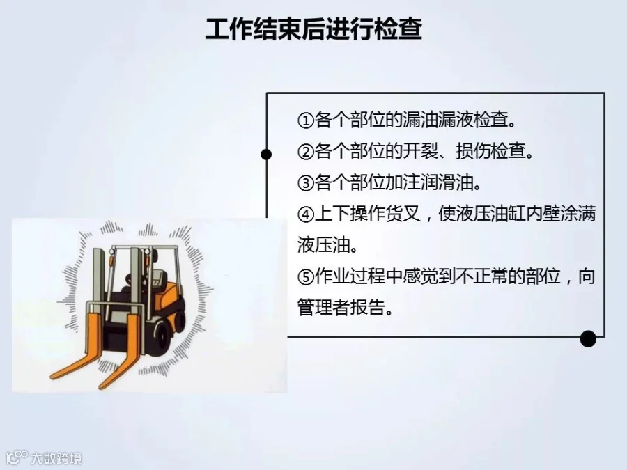 5.叉车运行后还应检查外泄漏情况并及时更换密封件。