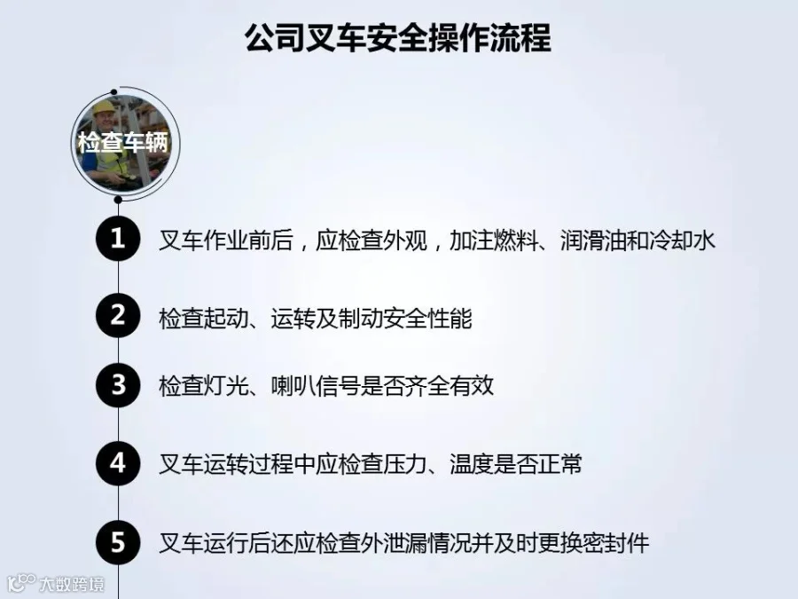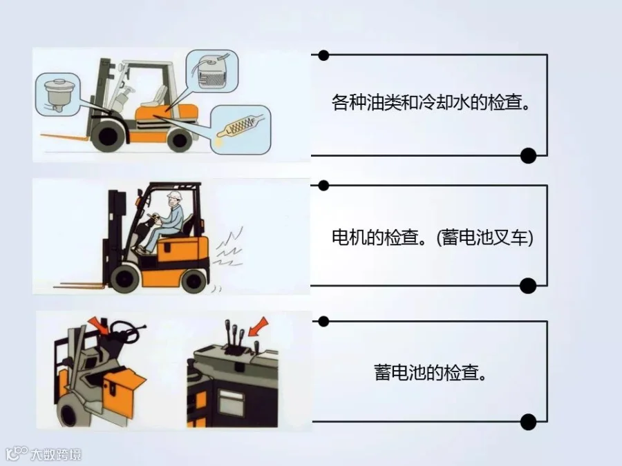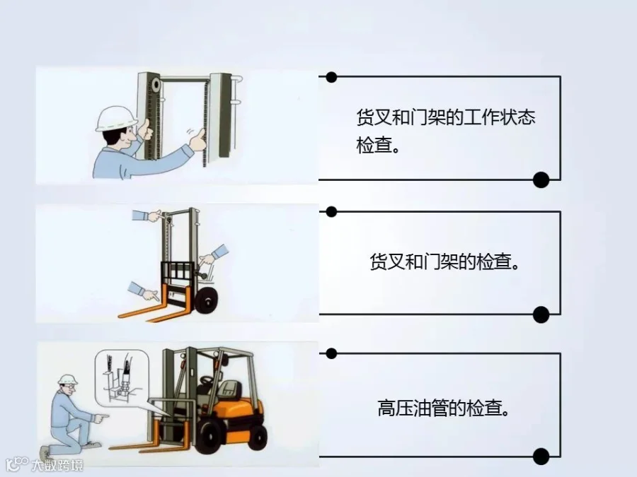 4. 叉车运转过程中应检查压力、温度是否正常。