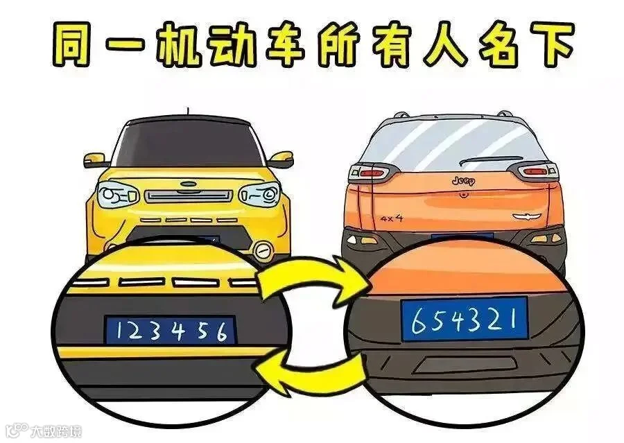 如果名下有两辆蓝色牌照的非营运车辆,就可以互换牌照。而蓝色的车牌与黄色的车牌就无法进行互换了,而且这两块车牌都必须是在同一人名下,每年只能兑换一次。