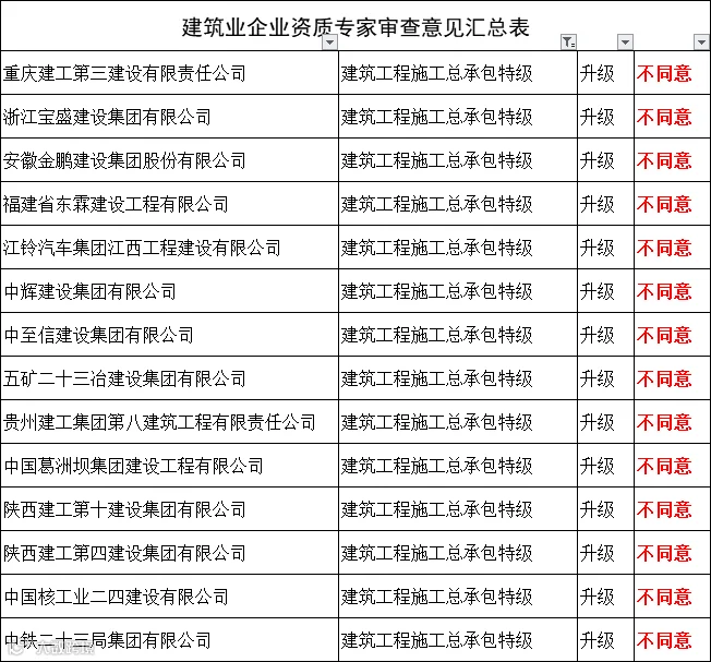 2019年12月30日,住房和城乡建设部官网公布一批“建筑业企业资质专家审查意见”,14家企业提出的“升特级”申请,全部不通过!
