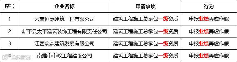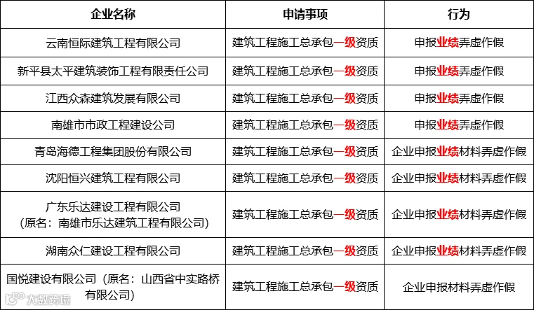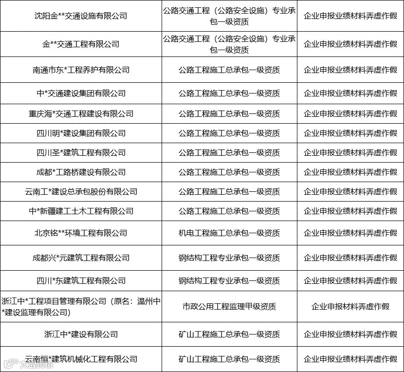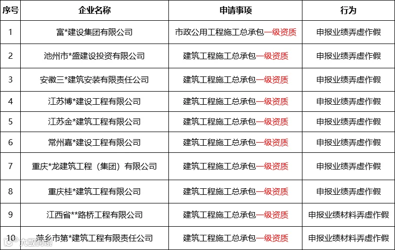 1、资质申报弄虚作假企业名单