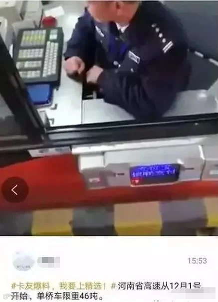 卡友爆料:从截图中,可以看到河南高速从12月1日起,单桥车限重46吨。收费站已经开始实施货车超载46吨以上将不让上高速,有路政劝返,有警察罚款扣车!