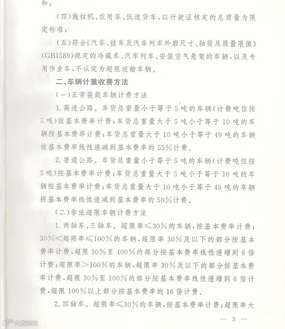 4、对于非法超限超载车辆车货总重量限值部分计费方式进行了调整,将非法超限超载车辆车货总重量限值部分按递减后费率计费调整为按基本费率计费。