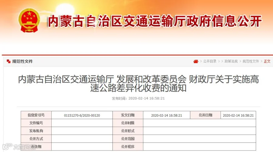 2月14日,内蒙古自治区交通运输厅等三部门发布《关于实施高速公路差异化收费的通知》,对载货类汽车采取进一步差异化收费措施,本次差异化收费适用于全区所有高速公路的货车,客车暂不做差异化收费调整。