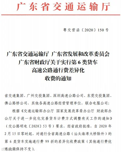 3月2日,广东省交通运输厅发布文件,自2020年2月15日零时起,对通行全省高速公路(