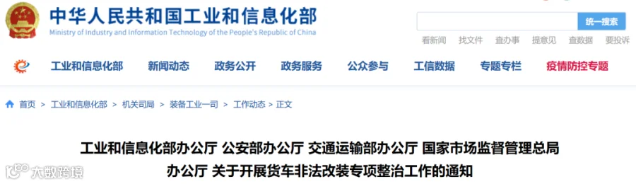 按照国务院安委会《全国安全生产专项整治三年行动计划》(以下简称《行动计划》)部署和《道路运输安全专项整治三年行动实施方案》(以下简称《实施方案》)要求,工业和信息化部、公安部、交通运输部、市场监管总局决定自2020年7月至2021年5月组织开展货车非法改装专项整治工作,预防和遏制货车非法改装行为,保障道路运输安全。具体事项通知如下。